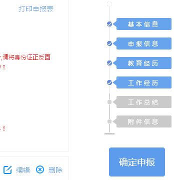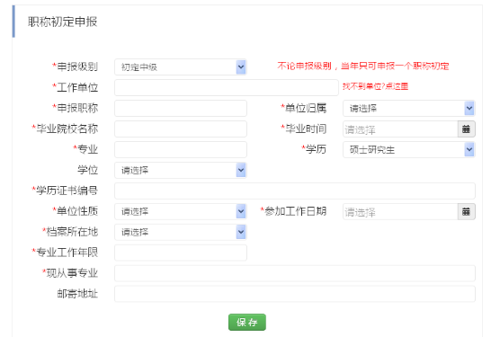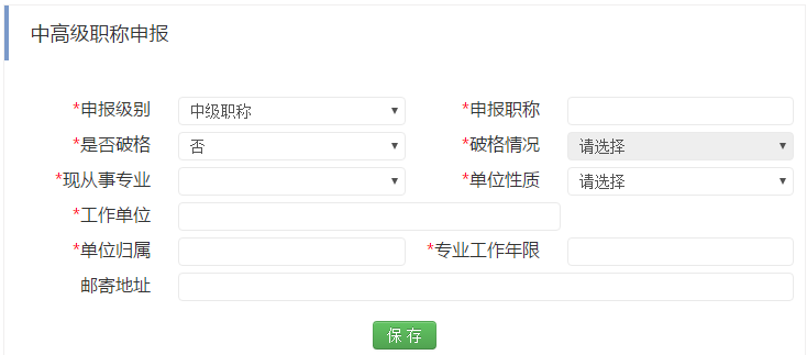 全部填寫完畢后,點(diǎn)擊【保存】按鈕,中高級(jí)職稱申報(bào)基礎(chǔ)信息填寫完成。