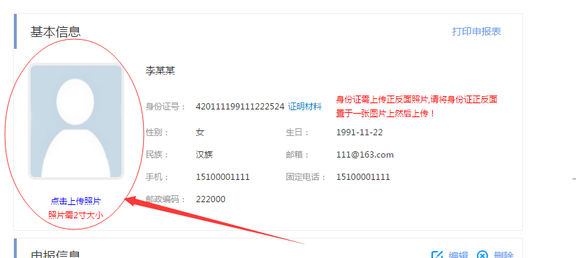 刷新后拖動(dòng)到學(xué)歷信息部分,可見新增的學(xué)歷信息如下顯示,點(diǎn)擊如圖1.1.2.6中的【修改】按鈕可修改選擇的學(xué)歷信息,點(diǎn)擊【刪除】即可刪除當(dāng)前學(xué)歷信息,點(diǎn)擊【證明材料】上傳學(xué)歷證明材料。
