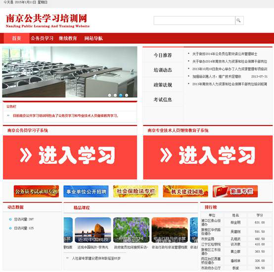 第一步;登錄“ 南京公共學(xué)習(xí)培訓(xùn)網(wǎng)”,點擊“繼續(xù)教育”,再點擊“進入學(xué)習(xí)”;或者直接點擊“ 南京公共學(xué)習(xí)培訓(xùn)網(wǎng)”首頁中“南京市專業(yè)技術(shù)人員繼續(xù)教育子系統(tǒng)”區(qū)域內(nèi)的“進入學(xué)習(xí)”。