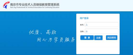 第二步:在“南京市專業(yè)技術(shù)人員繼續(xù)教育管理系統(tǒng)”登錄首頁,輸入帳號及密碼,點擊“登錄”按鈕登錄系統(tǒng)。