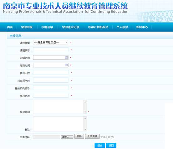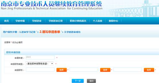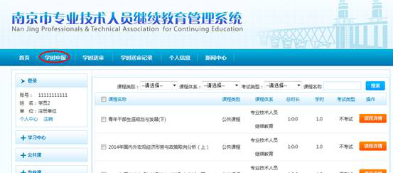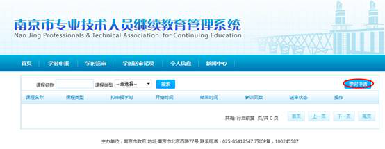 第四步:在“南京市專業(yè)技術(shù)人員繼續(xù)教育管理系統(tǒng)”,點擊“學(xué)時申報”。