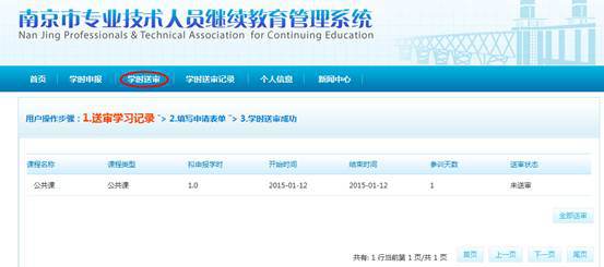 第一步:學(xué)時申報完成后即可以學(xué)時送審。登錄系統(tǒng)后,點擊“學(xué)時送審”。